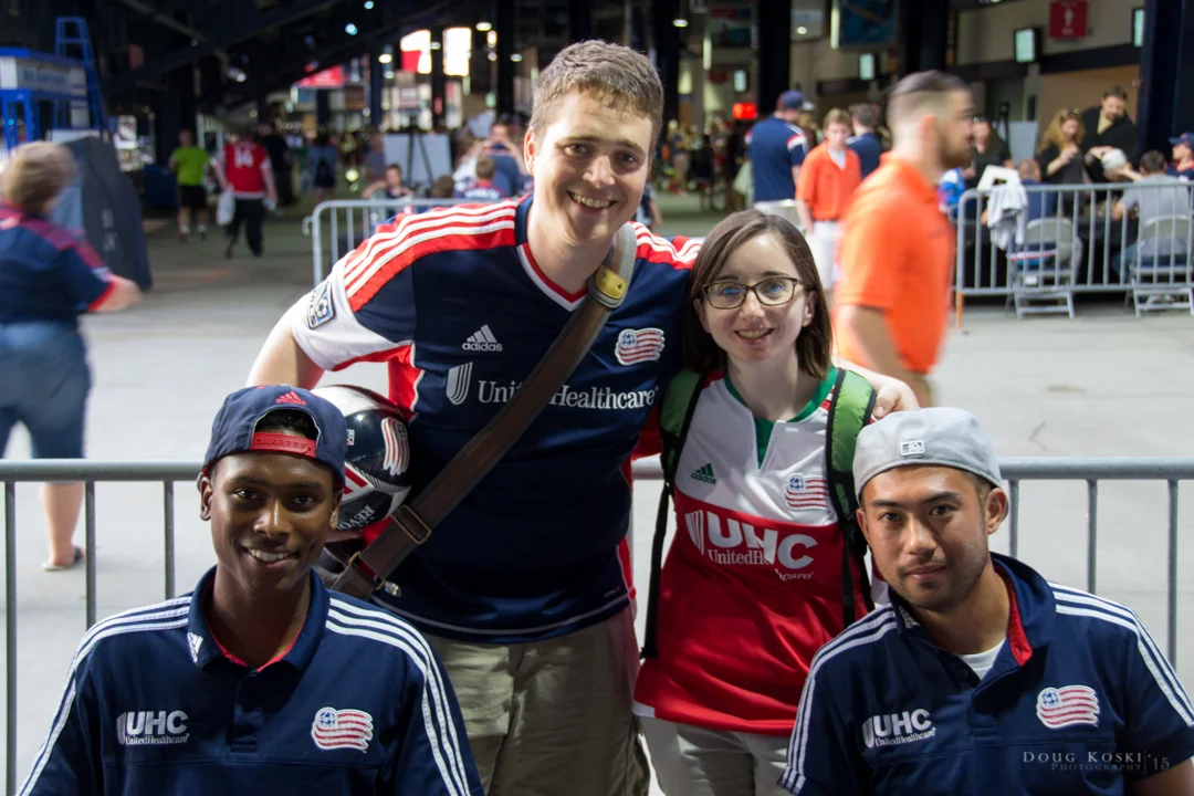 Sinéad and I had the opportunity to again go to the New England Revolution - Day on the Pitch at Gillette Stadium. We were concerned about clouds and crowds, but were very fortunate on both fronts. There was some traffic backups on rt. 128, but that's just par for the course when encountering that multi-lane segment of lost faith in humanity. We did eventually make our destination, and were heading towards the main gates. Before too long, we were walking out onto the field.